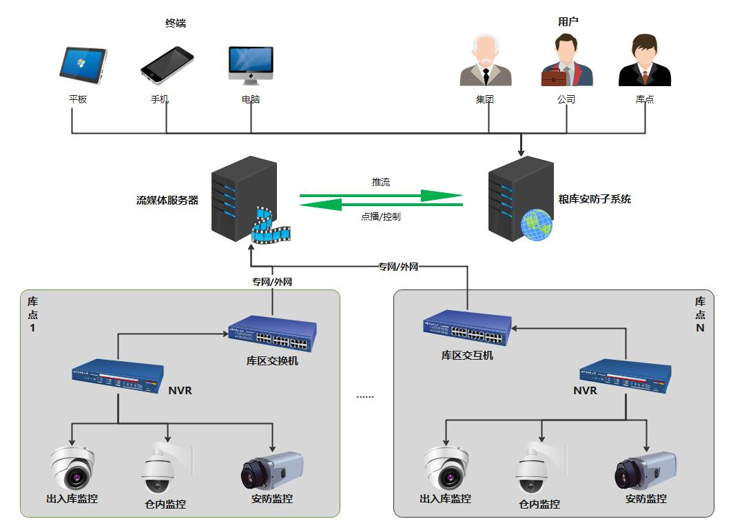 團化需求,通過(guò)流媒體技術(shù)和物聯(lián)網(wǎng)技術(shù)實(shí)現對多組織、多庫區視頻監控進(jìn)行集成,